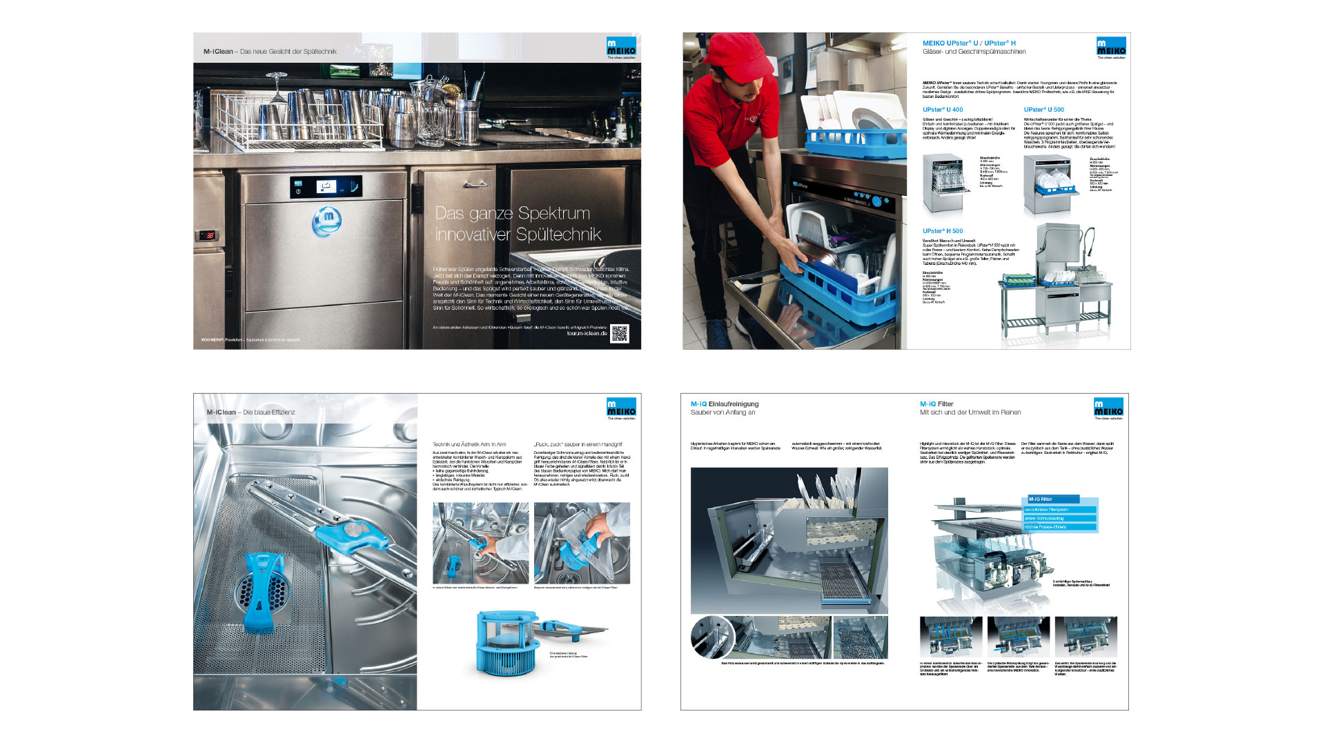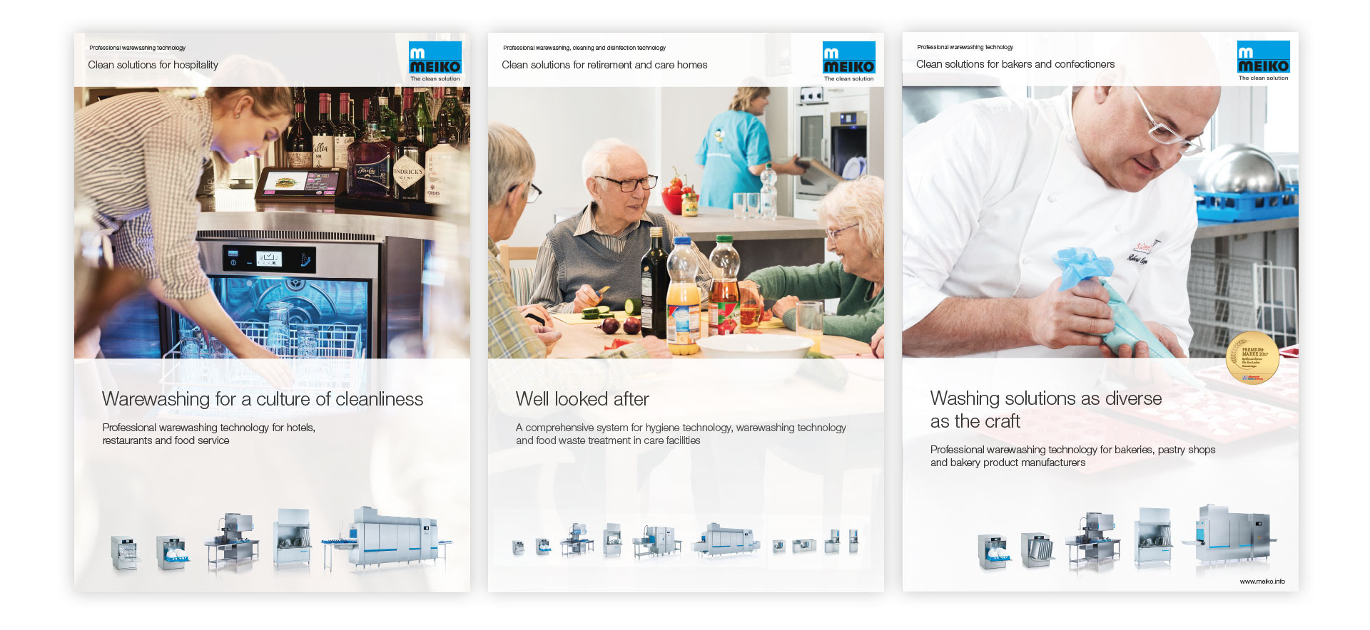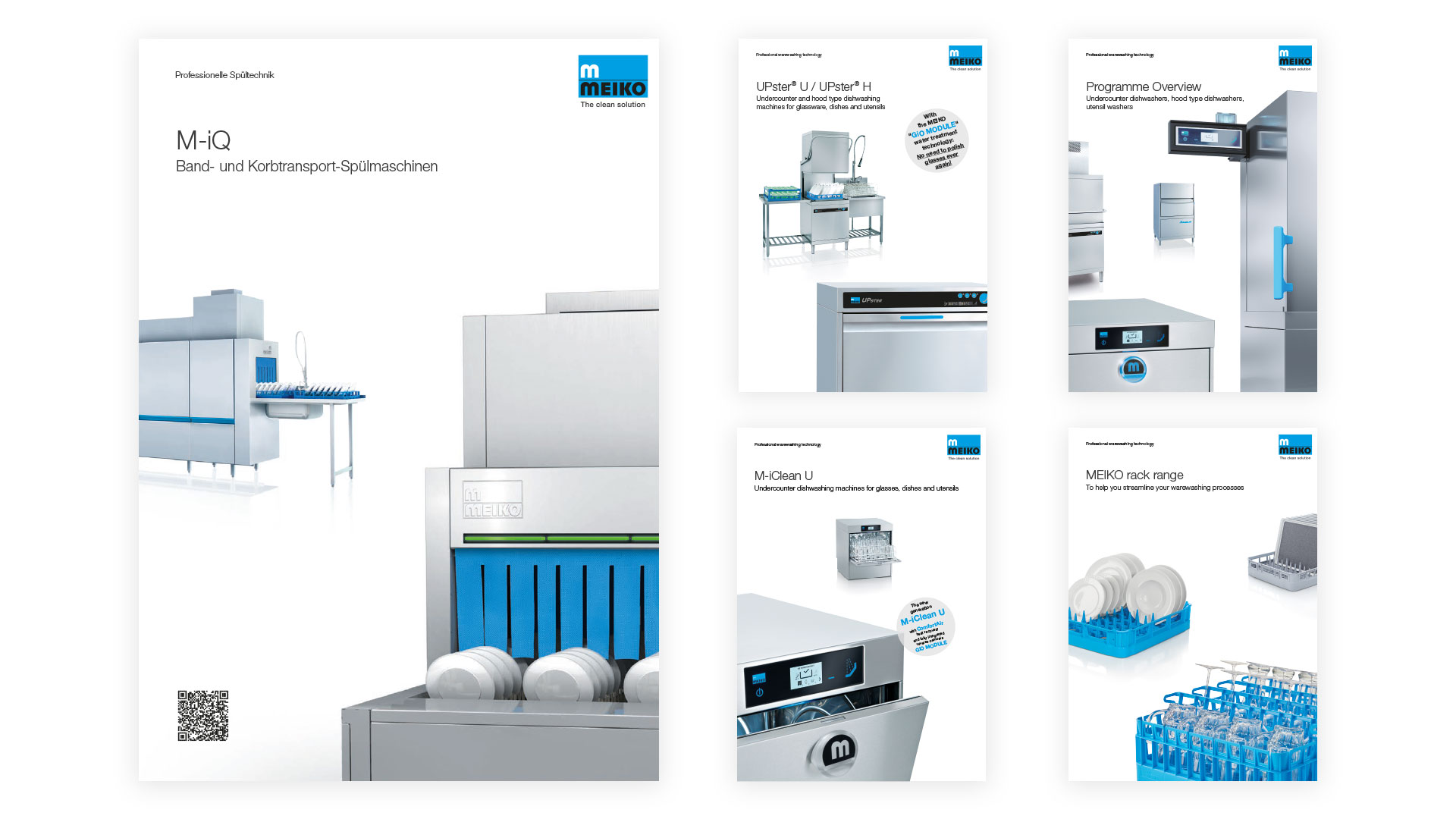 Each brochure is produced according to the principle of repetition using the design patterns shown below. This guarantees that the MEIKO brand is recognised any time and anywhere. We present the familiar and thus engender trust.