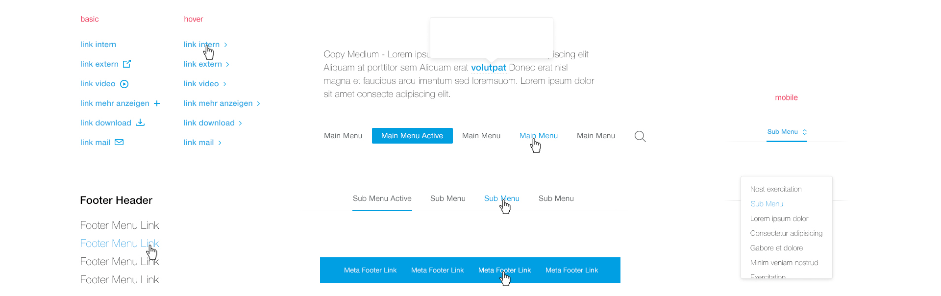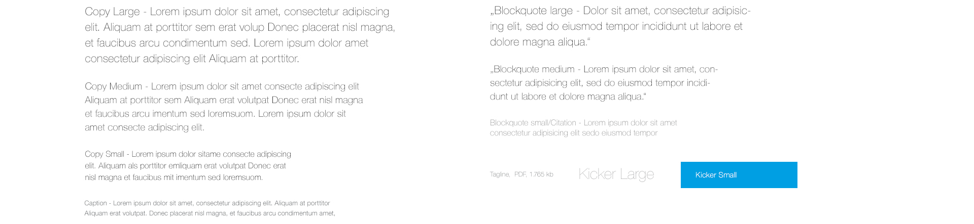 As already mentioned in the design basics section, the Helvetica Neue LT font family is also used for screen typography in the corresponding web fonts. Mainly, we use the fonts 35 Thin, 45 Light (standard font for prose and headings), 55 Roman, 56 Italic, 65 Medium and 75 Bold.