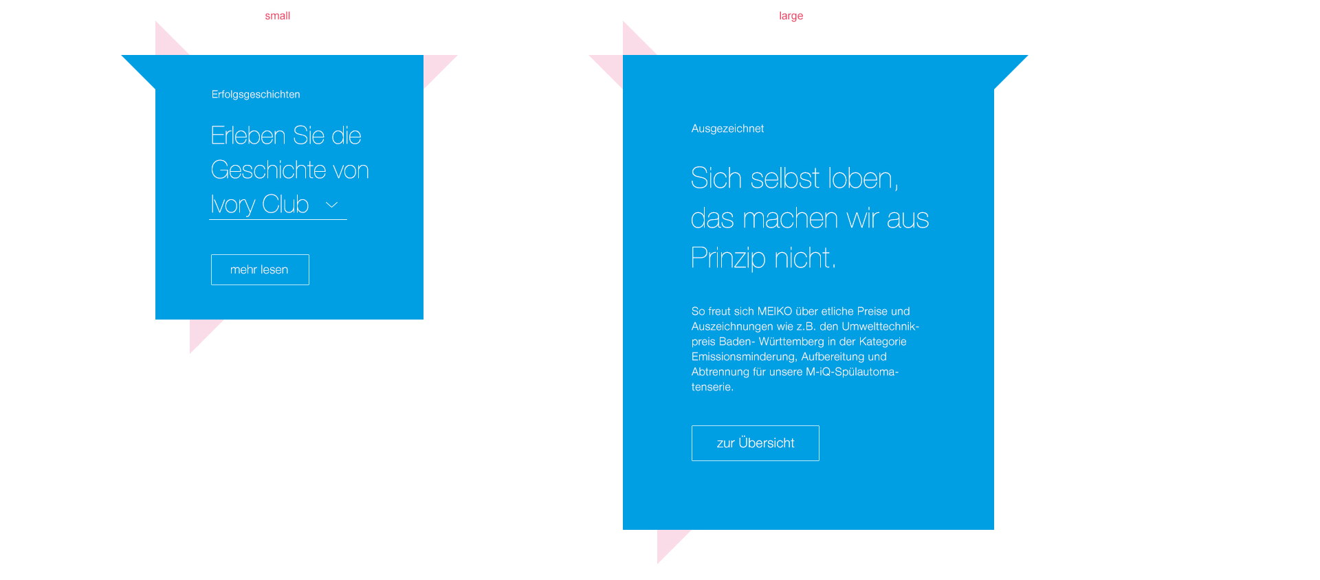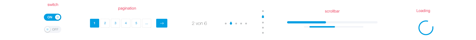 Controls are part of every web app, just like a steering wheel in a car. We use the generally accepted standard to capture repeat inputs and only adapt it subtly to fit in with the MEIKO world. For example, we shape active points like water droplets on slideshows, among other things.